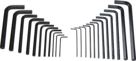 Heavy duty Super long Carbon steel Short arm series metric 13 pieces, 1.5 – 10mm Long arm series S.A.E. 12 pieces, 1/16” – 3/8” Supplied in a convenient PVC pouch
