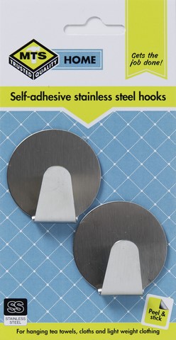 MTS HOMESELF ADHESIVE STEEL HOOKS Stainless steel For hanging purposes Ideal for hanging tea towels, cloths and lightweight clothing 2 piece LargeRound